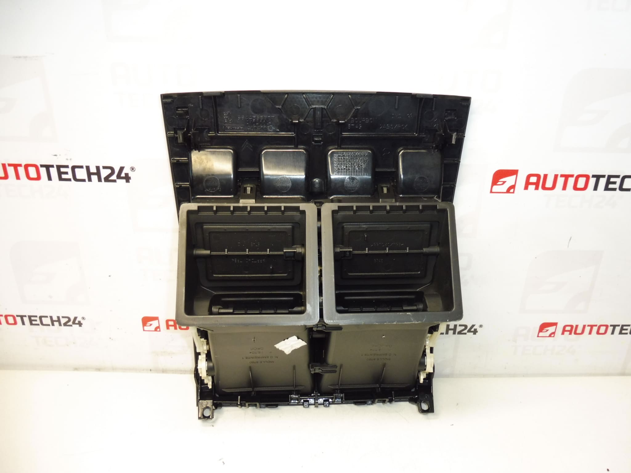 Gebruikte centrale ventilatieroosters voor het interieur van de Peugeot 407. De onderdelen zijn bedoeld ter vervanging van beschadigde, gebarsten of niet-functionele ventilatieroosters in het dashboard. Het productnummer 9644589777 en de aanduiding HXN (volgens het etiket) zijn essentieel voor een snelle tracking en correcte identificatie.